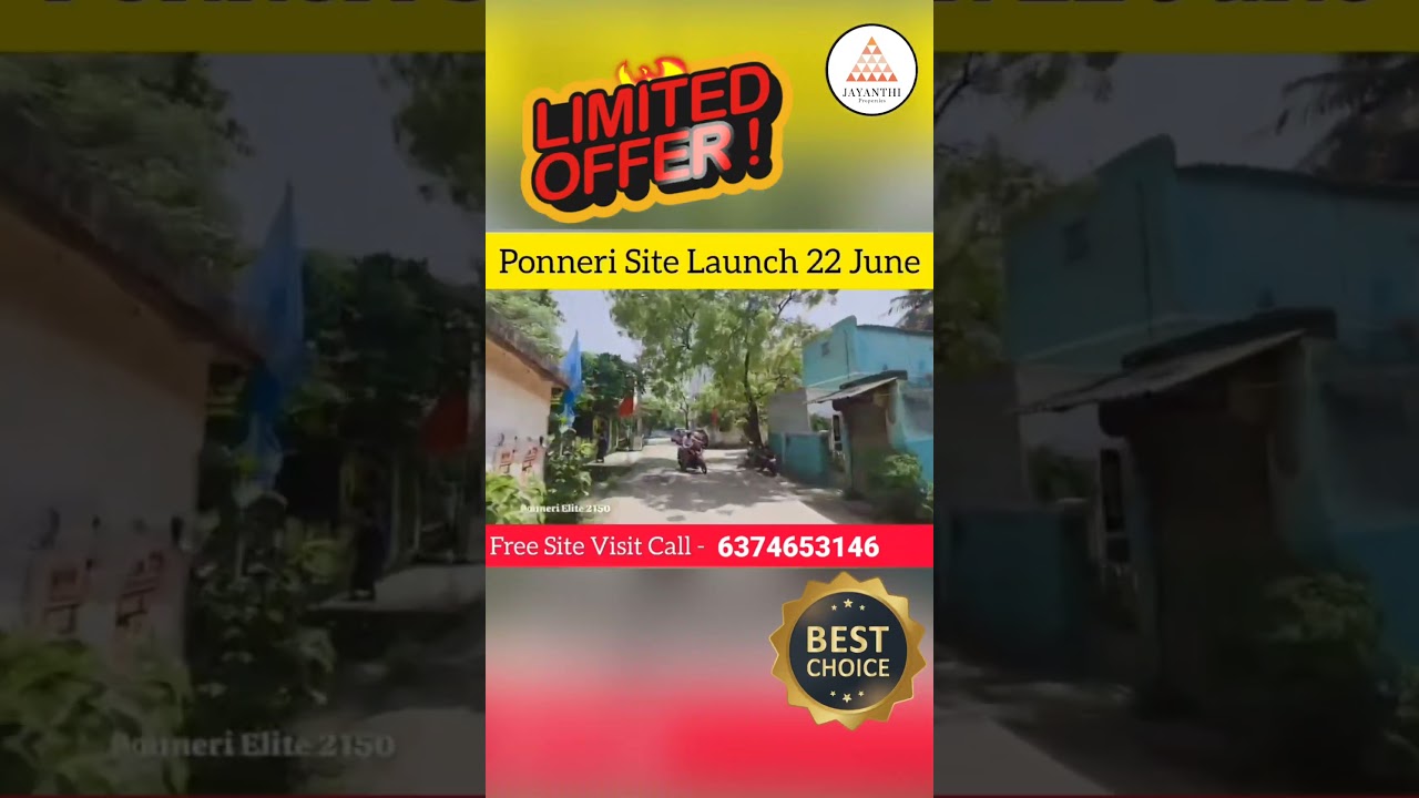 Grab your dream plot inside *Ponneri City* at an unbeatable *pre-launch price of just ₹2150/sqft*! ✅ *DTCP & RERA Approved* ✅ *Prime location – inside Ponneri town* ✅ *Just ₹1 Lakh Agreement* ✅ *Spot Booking – Get a FREE Gold Coin!* Ideal for investment and future residential growth. 📞 Limited plots available! Call now and book your site visit today! 6374653146. #PonneriPlots,#ChennaiRealEstate,#DTCPApproved, #RERAApproved, #LandForSale, #PonneriCityPlots, #InvestmentProperty, #ChennaiPlots, #GoldCoinOffer, #PreLaunchPlots, #PonneriPlots, #ChennaiRealEstate, #DTCPApproved, #RERAApproved, #LandForSale, #PonneriCityPlots, #InvestmentProperty, #ChennaiPlots, #GoldCoinOffer, #PreLaunchPlots, #RealEstateDeals, #PonneriDevelopment, #FutureInvestment, #CityPlotsSale, #PlotBookingOffer, Ponneri plots, DTCP approved plots, RERA approved plots, land for sale in Ponneri, Chennai real estate, Ponneri city plots, plots near Chennai, investment land, pre launch offer plots, plots at 2150 sqft, real estate Ponneri, gold coin offer, Ponneri development, residential land Ponneri, plot booking Ponneri,