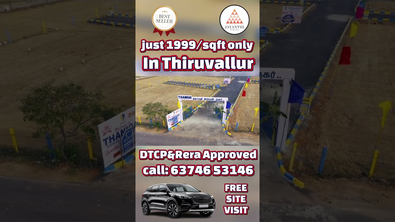 🏡 Own your dream plot in Chennai Thiruvallur at an unbeatable price of just ₹1999/sqft!✅ DTCP & RERA Approved✅ Gated Community with EB, Water & Street Lights✅ Close to Tirupati Highway, Collector Office, Colleges & Bus Stand✅ Free Site Visit & Easy Bank Loan Available📍 Location Advantage:5 mins from Collector OfficeNear Government Medical College & Engineering CollegesOuter Ring Road & Bus Stand ConnectivityPeaceful and Fast Developing Area✨ Limited Plots Available – Book Now for Best Price! 📞 Contact us 6374653146, today for Free Site Visit & Registration Offer. #ChennaiPlots, #ThiruvallurPlots, #PlotsForSale, #ChennaiRealEstate, #ThiruvallurRealEstate, #DTCPApprovedPlots, #RERAApprovedPlots, #ChennaiInvestment, #AffordablePlots, #PlotsNearChennai, #HighwayPlots, #DreamHomePlots, #ChennaiProperty, #ChennaiHousing, #GatedCommunityPlots, #ChennaiDTCPPlots, #LandInvestment, #RealEstateChennai, #PlotsForSaleChennai, #PropertyInvestment, Chennai plots for sale, Thiruvallur plots for sale, DTCP approved plots Chennai, RERA approved plots Chennai, plots in Thiruvallur near collector office, affordable plots Chennai, gated community plots Chennai, Chennai land investment, plots near Tirupati highway, property for sale in Thiruvallur, Chennai real estate investment, plots at 1999 per sqft, Chennai housing projects, residential plots Chennai, plots with bank loan Chennai, plots with free site visit, land for sale near colleges Chennai, Chennai property deals, best investment plots Chennai, Thiruvallur property,